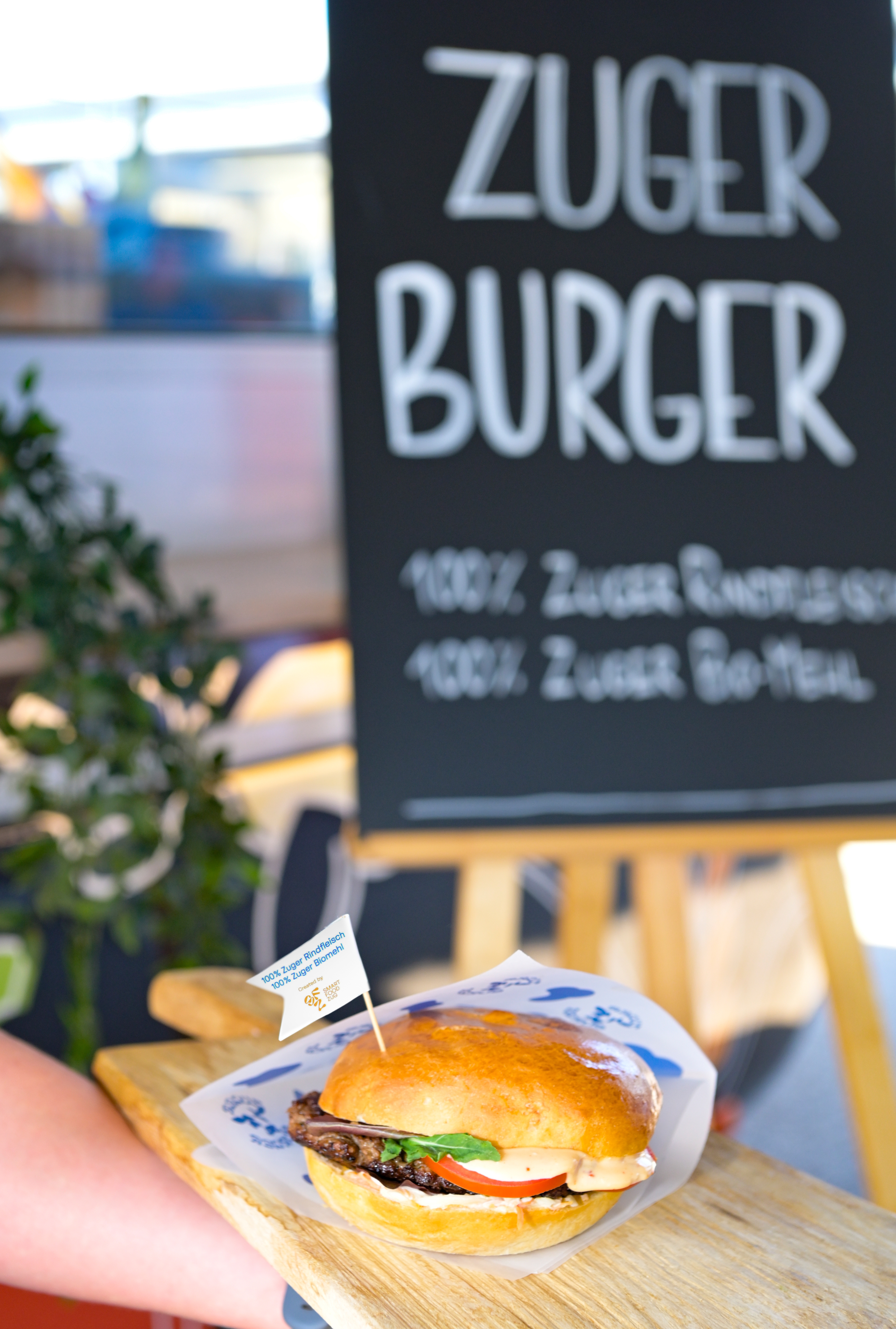 Der Zuger Burger wurde von Smart Food Zug initiiert. Er steht für kurze Transportwege, transparente Herkunft und Unterstützung der lokalen Landwirtschaft und Produktion. Das Fleisch stammt von Rindern aus dem Kanton. Das Brötchen wird aus biologisch angebautem Mehl von Zuger Feldern gebacken. Ziel ist es, dass der Zuger Burger künftig in lokalen Metzgereien und Gastrobetrieben im ganzen Kanton angeboten wird.